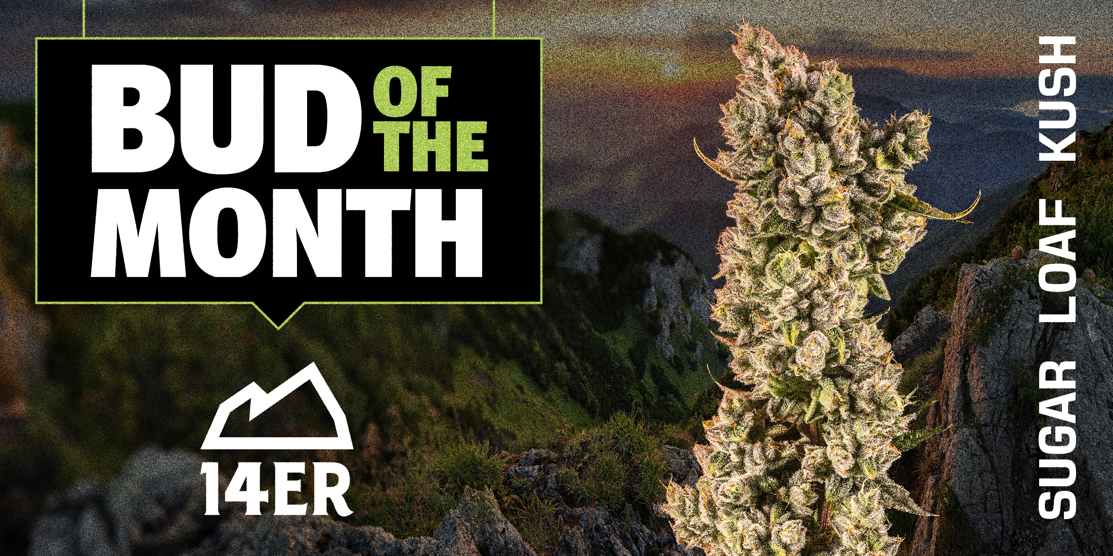 Sugar Loaf Kush is a highly respected cultivar that 14er has created with an old school meets new school lineage to honor both past and present. Sugar Loaf Kush is a heartfelt homage to the peaceful “Sugar Loaf” community and the iconic Sugarloaf Mountain in Boulder, Colorado – one of the Front Range’s gateways to breathtaking alpine views, pristine nature, and the raw spirit of the Rockies. This strain has notes of earthy tea and OG Kush from the classic Kosher Kush with undertones of sweet gas and dough from the modern-day Pancakes strain. With myrcene, limonene and bisabolol dominant terpenes this strain delivers stoney, calming and joyful effects.